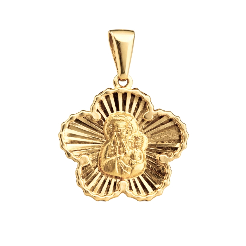 Elegancki medalik został wykonany z wysokiej jakości żółtego złota próby 585 (14K). Zachwyca swoją oryginalną, ażurową formą przypominającą kwiat.