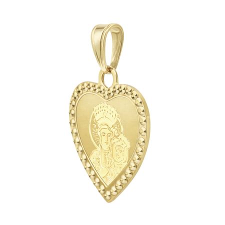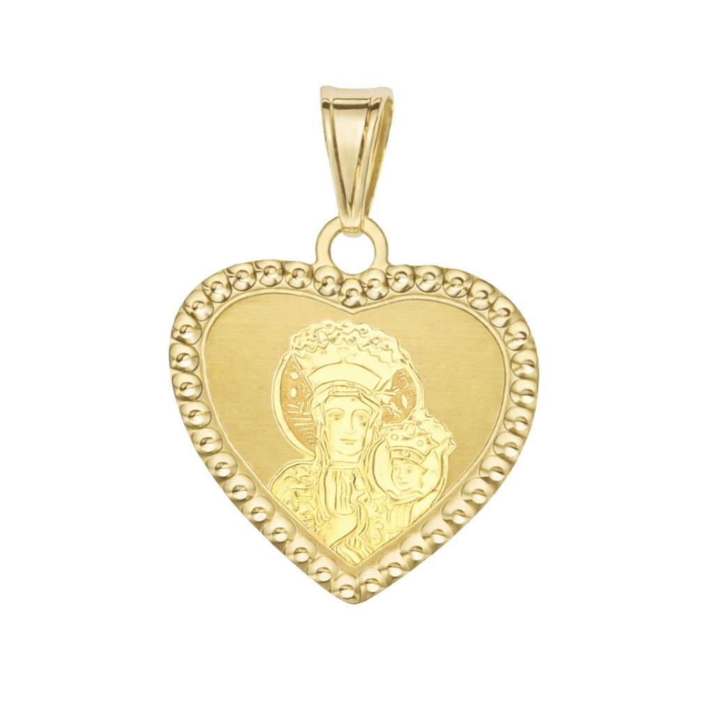 Medalik został wykonany z żółtego złota próby 585 (14K) w kształcie serca. Delikatna forma oraz gładka, polerowana powierzchnia nadają elegancki i ponadczasowy charakter. Subtelna, dekoracyjna oprawa wokół zawieszki podkreśla jej estetykę i pięknie odbija światło.