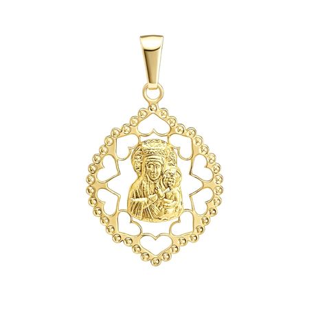 Medalik został wykonany z wysokiej jakości żółtego złota próby 585 (14K). Jego wyjątkowa forma wyróżnia się ażurową oprawą w kształcie delikatnych serc, które tworzą subtelną i symboliczną kompozycję.