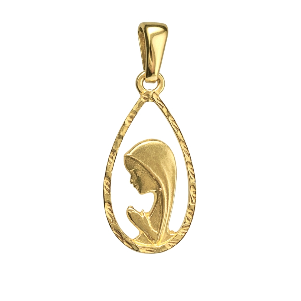 Medalik został wykonany z żółtego złota próby 585 (14K). Przedstawia on subtelny wizerunek Matki Bożej w modlitewnej pozie, która jest symbolem spokoju, opieki i duchowego wsparcia.