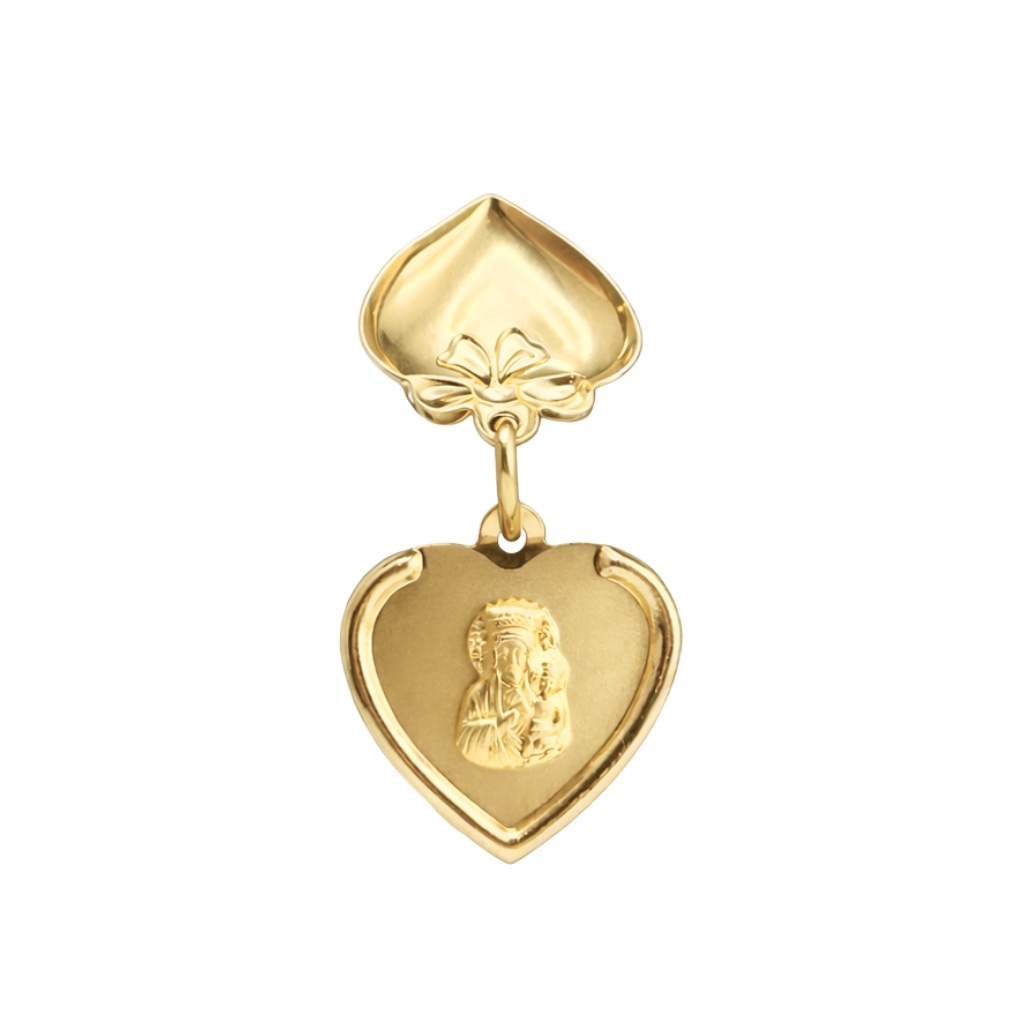 Serce jest otwierane, a wewnątrz znajduje się wizerunek Matki Boskiej Częstochowskiej. Ten wyjątkowy motyw nadaje całości szczególnego znaczenia duchowego i sprawia, że zawieszka pełni rolę osobistego symbolu wiary.