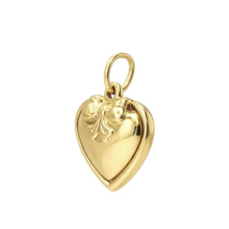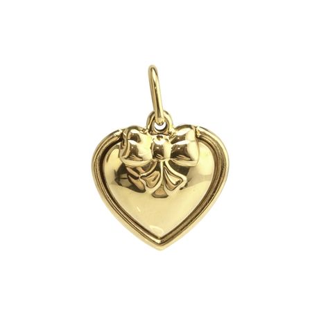 Medalik został wykonany z żółtego złota próby 585 (14K) w kształcie serca. Delikatna forma oraz gładka, polerowana powierzchnia nadają elegancki i ponadczasowy charakter. Ozdobna kokardka umieszczona w górnej części podkreśla subtelny, dekoracyjny styl biżuterii.