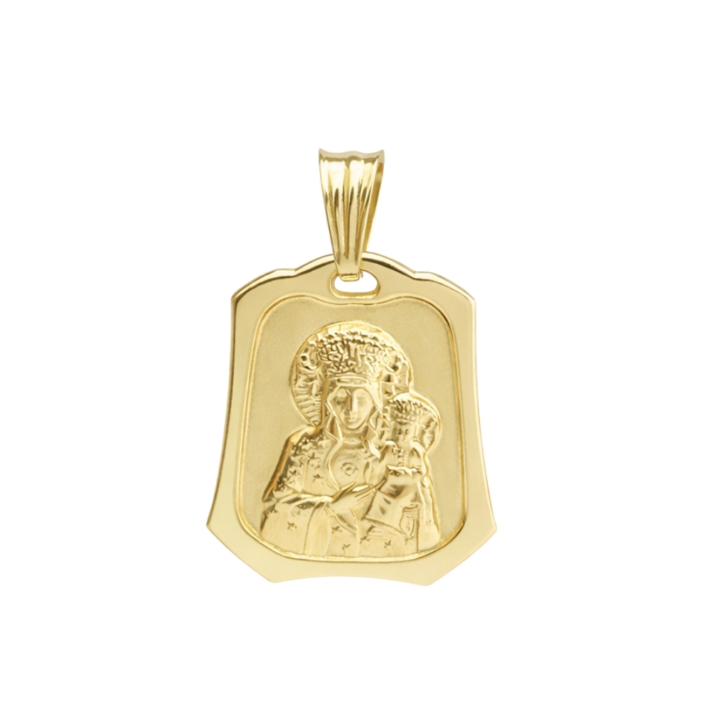 Medalik został wykonany z żółtego złota próby 585 (14K). Przedstawia wizerunek Matki Bożej z Dzieciątkiem Jezus, symbolizujący opiekę, miłość oraz duchowe wsparcie.