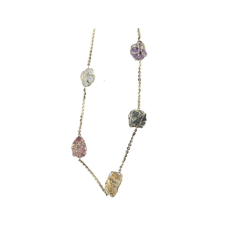 Złoty łańcuszek, który oplata pięć różnokolorowych kamieni. Kompozycja ta emanuje energią i witalnością.