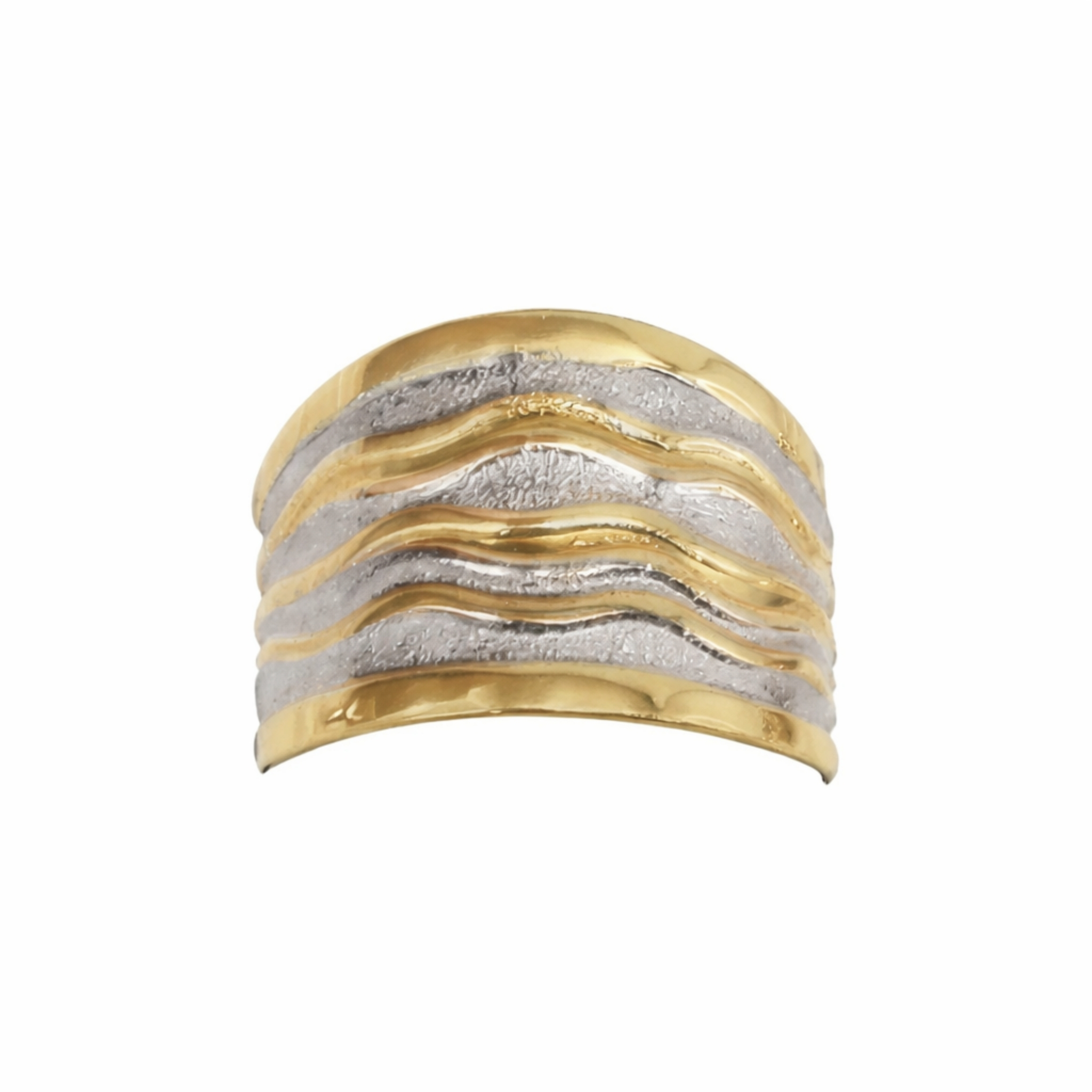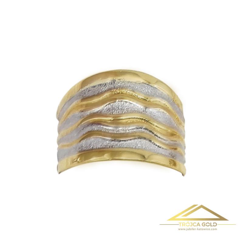 Nowoczesny Pierścionek, Biało Żółte Szerokie Fale, próby 585