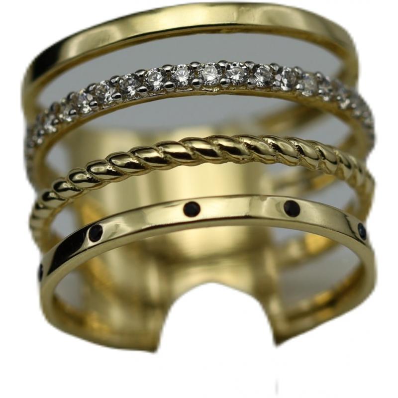 Szeroki, nowoczesny, efektowny, a zarazem delikatny pierścionek wykonany z żółtego złota pr. 585 Biżuteria ozdobiona jest rzędem cyrkonii, które pięknie mienią się w świetle. Jeśli lubisz podążać za modą i nowymi trendami pierścionek ten jest dedykowany dla Ciebie, gdyż idealnie wpisuje się w najnowsze trendy!