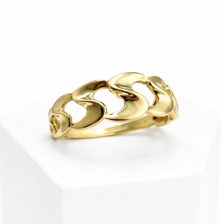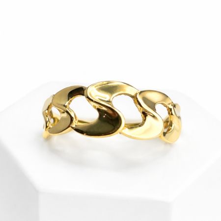 Pierścionek został wykonany z wysokiej jakości żółtego złota próby 585 (14K). Jego oryginalna forma inspirowana jest motywem łańcucha, który nadaje biżuterii nowoczesny i wyrazisty charakter.