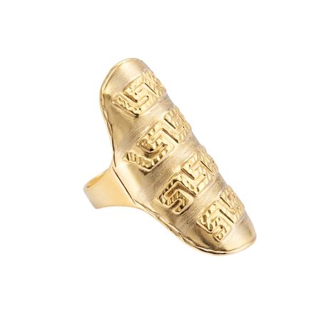 Szeroka, efektowna obrączka została ozdobiona charakterystycznym, geometrycznym wzorem inspirowanym motywem greckim, nadając całości niepowtarzalnego stylu i elegancji.