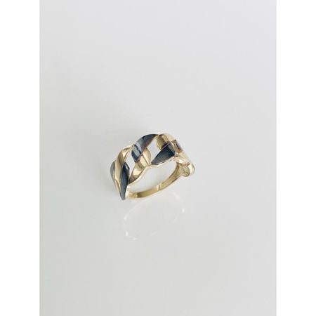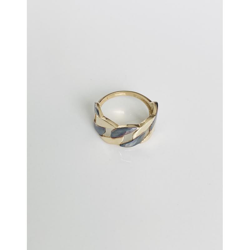 Pierścionek wykonany ze złota pr. 585. Piękny pierścionek o bardzo modnym wzorze. Ogniwa przeplatają się przechodząc z żółtego złota w kolor czarny. Idealnie pasuje co stylizacji codziennych oraz formalnych.
