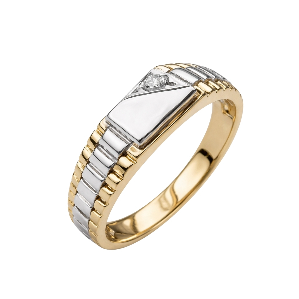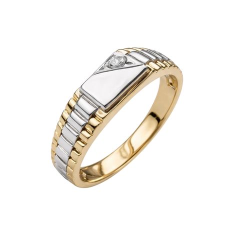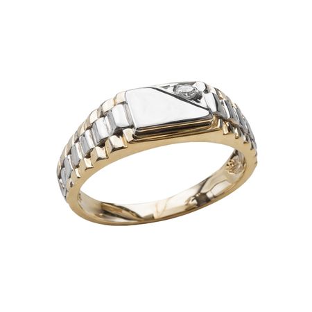 Pierścionek typu sygnet został wykonany z wysokiej jakości złota próby 585 (14K). Produkt ten łączy w sobie klasyczne żółte złoto z eleganckimi elementami białego złota, tworząc wyrafinowaną i nowoczesną kompozycję. Centralnie umieszczona blaszka została ozdobiona subtelną cyrkonią, której blask pięknie odbija światło i nadaje całości szlachetnego charakteru.