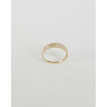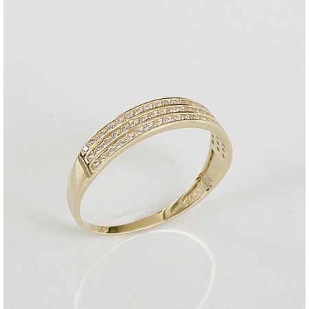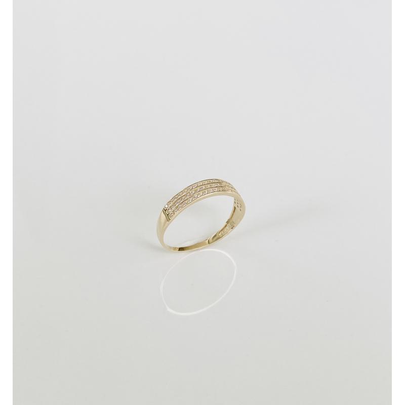 Pierścionek wykonany ze złota pr. 585. Subtelny pierścionek wysadzany trzema rzędami identycznych cyrkonii.