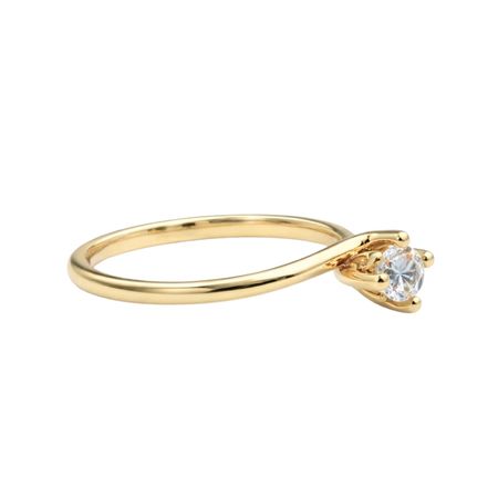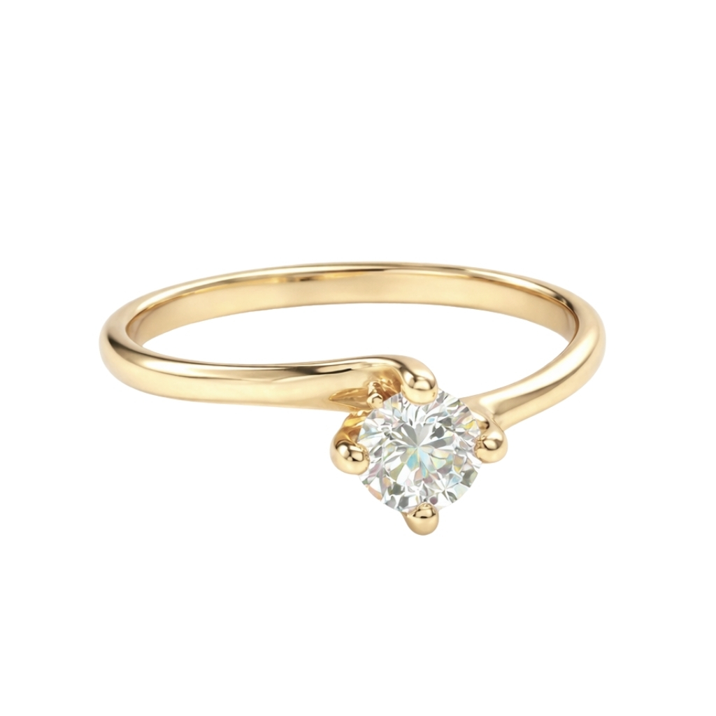 Pierścionek został wykonany z wysokiej jakości żółtego złota próby 585 (14K). Jego subtelna, delikatnie wygięta forma nadaje mu lekkości i nowoczesnego charakteru, a centralnie osadzona cyrkonia pięknie odbija światło, przyciągając wzrok i dodając całości elegancji.