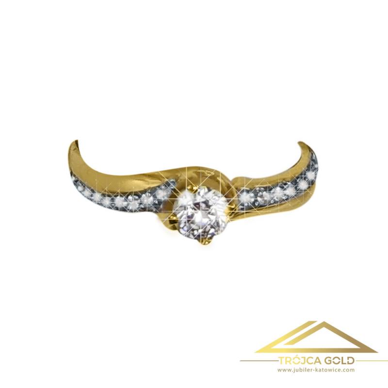 Pierścionek z Dużą Cyrkonią Centralną i Falą z Cyrkonii, próby 585