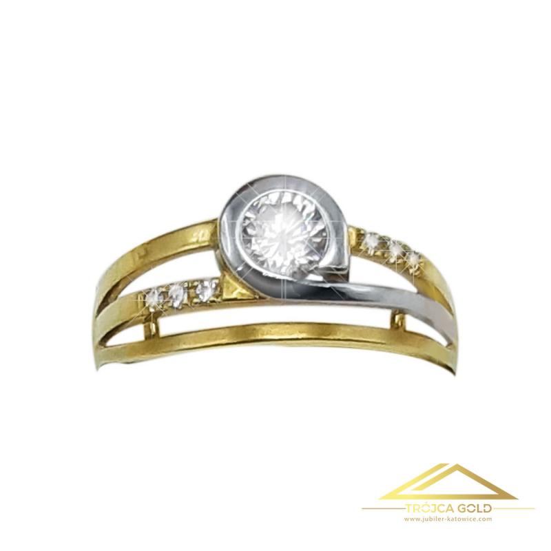 Pierścionek z Oplecioną Cyrkonią Centralną i 3 Obręczami, próby 585