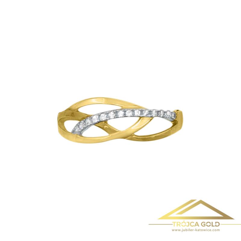 Pierścionek z Plecionymi Wstążkami i Białym Paskiem z Cyrkoniami, próby 585
