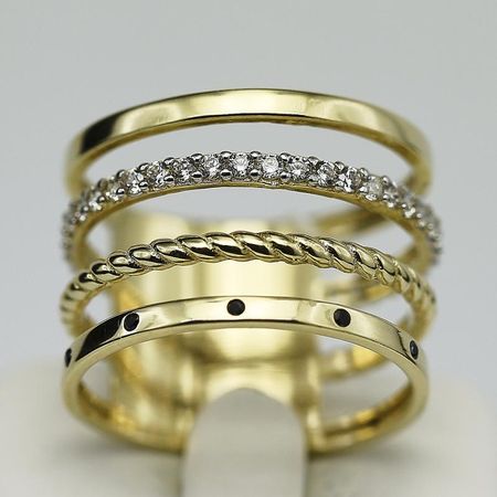 Piękny Złoty Pierścionek. Oryginalny model pierścionka, który jest złożony z 4 cienkich obrączek wspaniale prezentuje się na dłoni.