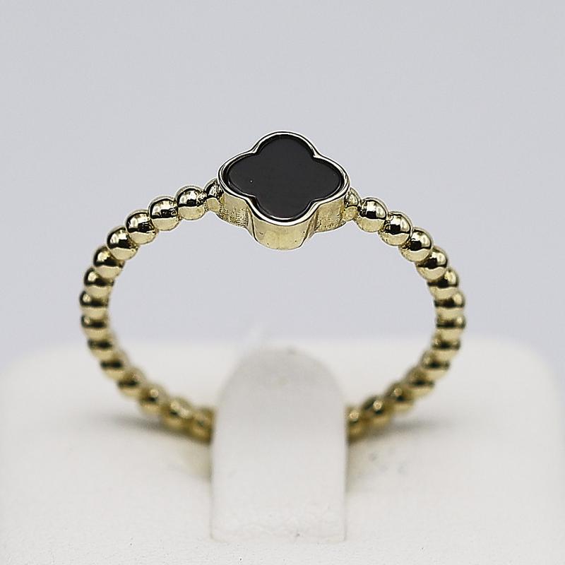 Piękny Złoty Pierścionek z czarna koniczynka.