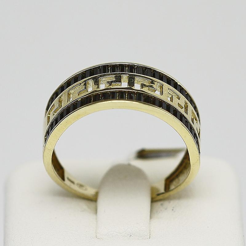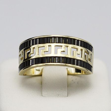 Piękny Złoty Pierścionek z czarnymi cyrkoniami i drogą grecką.
