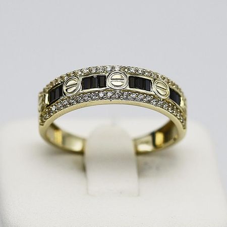 Pierścionek Złoty Czarne I Białe Cyrkonie 2.57g