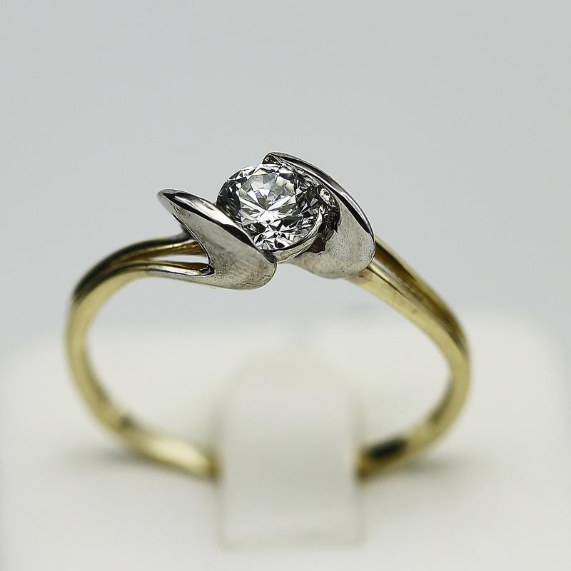 Piękny Złoty Pierścionek z centralnie umieszczoną cyrkonią.