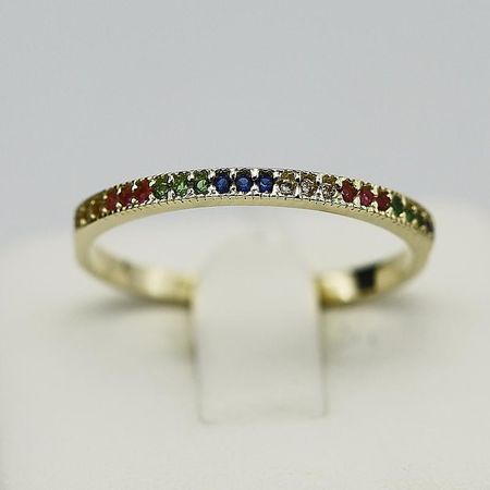 Pierścionek Złoty Z Kolorowymi Cyrkoniami 1.29g