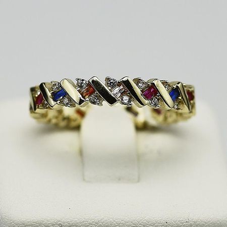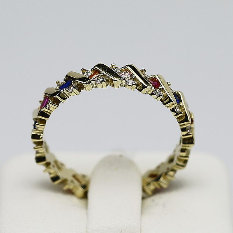 Piękny Złoty Pierścionek z kolorowymi cyrkoniami.