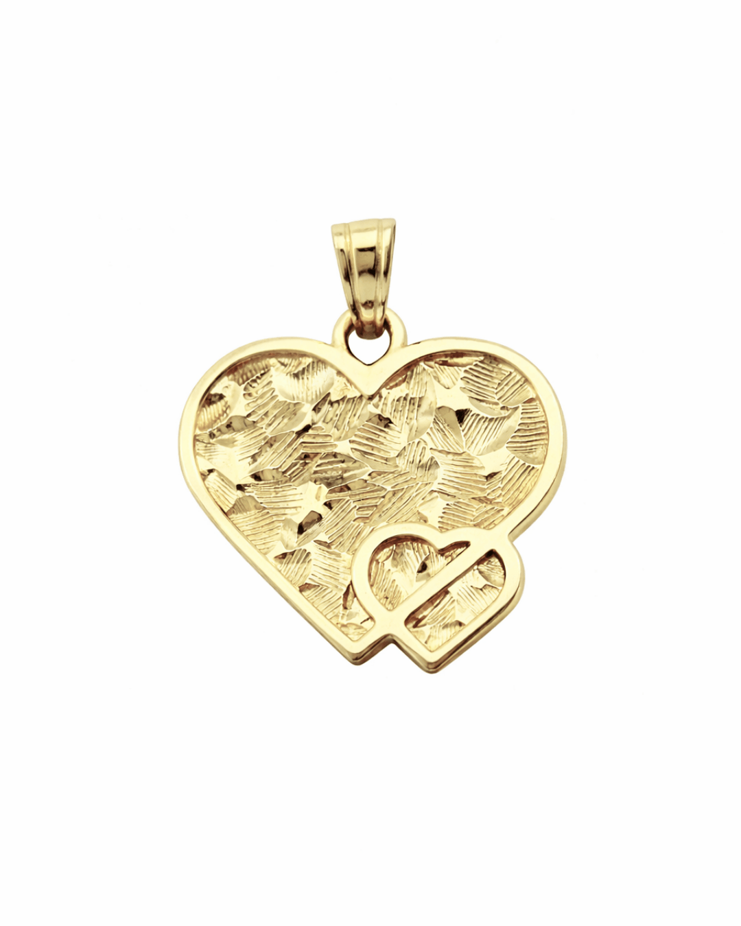 Wyjątkowa zawieszka w kształcie serca wykonana z wysokiej jakości żółtego złota próby 585. Model wyróżnia się dekoracyjną, strukturalną powierzchnią, która tworzy efekt subtelnej, nieregularnej faktury pięknie odbijającej światło.