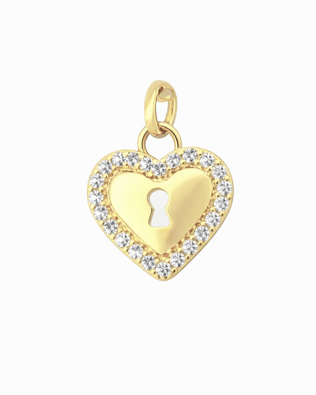 Centralną część serca zdobi motyw dziurki od klucza, symbolizujący tajemnicę, zaufanie oraz bliskość. Obrzeże wisiorka zostało starannie wysadzane drobnymi, połyskującymi kamieniami, które pięknie odbijają światło i nadają całości wyjątkowego blasku. Gładka, polerowana powierzchnia środka kontrastuje z lśniącą ramką, podkreślając elegancję kompozycji.