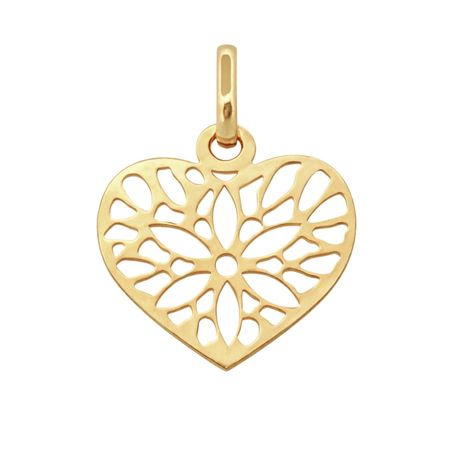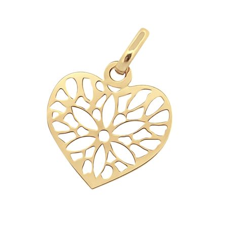 Zawieszka została wykonana z wysokiej jakości żółtego złota próby 585 (14K). Jej forma przedstawia serce o ażurowej, dekoracyjnej strukturze inspirowanej motywem roślinnym, nadając biżuterii lekkości oraz delikatnego, kobiecego charakteru. Powierzchnia złota pięknie odbija światło, podkreślając precyzję wykonania oraz staranność wykończenia każdego detalu.