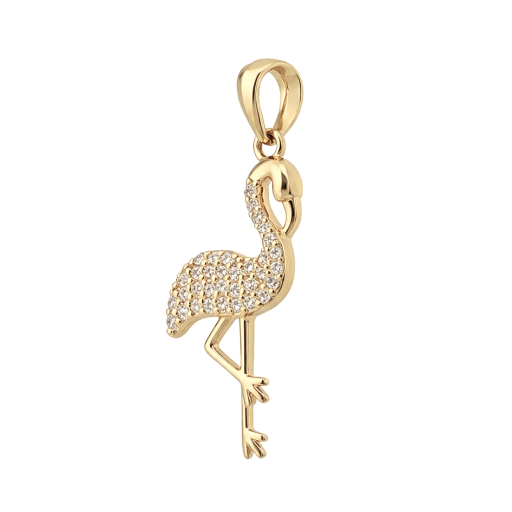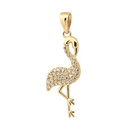 Wyjątkowa zawieszka w kształcie flaminga została wykonana z wysokiej jakości złota próby 585 (14K). Subtelnie wyprofilowana sylwetka ptaka została ozdobiona lśniącymi cyrkoniami, które pięknie odbijają światło i nadają biżuterii eleganckiego, przyciągającego spojrzenia blasku.