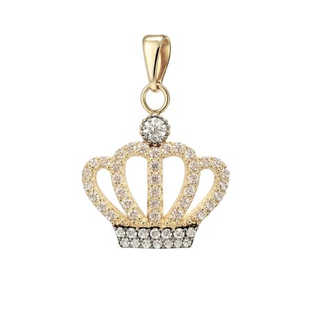 Zawieszka w kształcie korony została wykonana z wysokiej jakości żółtego złota z delikatnym akcentem białego złota próby 585 (14K). Efektowna, ażurowa forma została ozdobiona lśniącymi cyrkoniami, które nadają biżuterii wyjątkowego blasku.