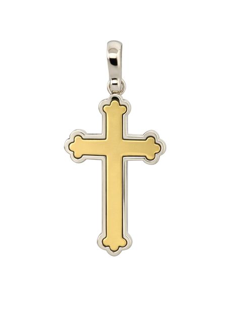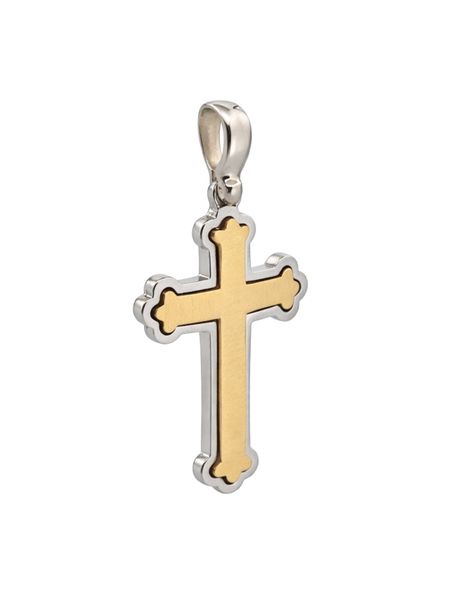 Zawieszka w kształcie krzyża została wykonana z połączenia żółtego i białego złota próby 585 (14K). Kontrast dwóch odcieni szlachetnego kruszcu nadaje całości wyjątkowego, eleganckiego charakteru.