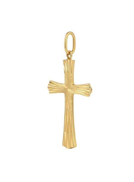 Zawieszka w kształcie krzyża została wykonana ze złota próby 585 (14K). Klasyczna forma została wzbogacona o efektowne promieniste zdobienia, które nadają biżuterii wyjątkowego charakteru. Starannie wykonana faktura pięknie odbija światło i podkreśla naturalny blask szlachetnego kruszcu. Precyzyjne wykończenie sprawia, że zawieszka prezentuje się niezwykle elegancko i estetycznie.