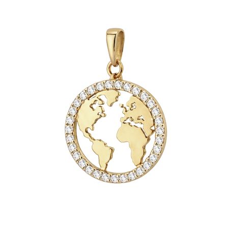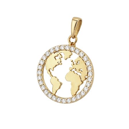 Wyjątkowa zawieszka w kształcie mapy świata została wykonana z wysokiej jakości złota próby 585 (14K). Okrągła forma z subtelnie wyciętym motywem kontynentów nadaje biżuterii nowoczesnego i symbolicznego charakteru. Obrzeże zawieszki zostało ozdobione lśniącymi cyrkoniami, które pięknie odbijają światło i tworzą efekt eleganckiej, świetlistej ramy.