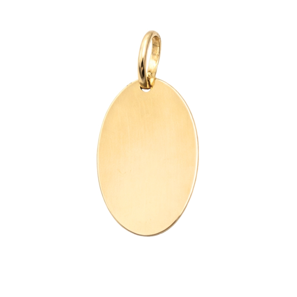 Elegancka zawieszka w kształcie owalnej blaszki została wykonana z wysokiej jakości złota próby 585 (14K). Klasyczna, ponadczasowa forma oraz gładka, satynowana powierzchnia nadają jej subtelnego i uniwersalnego charakteru.