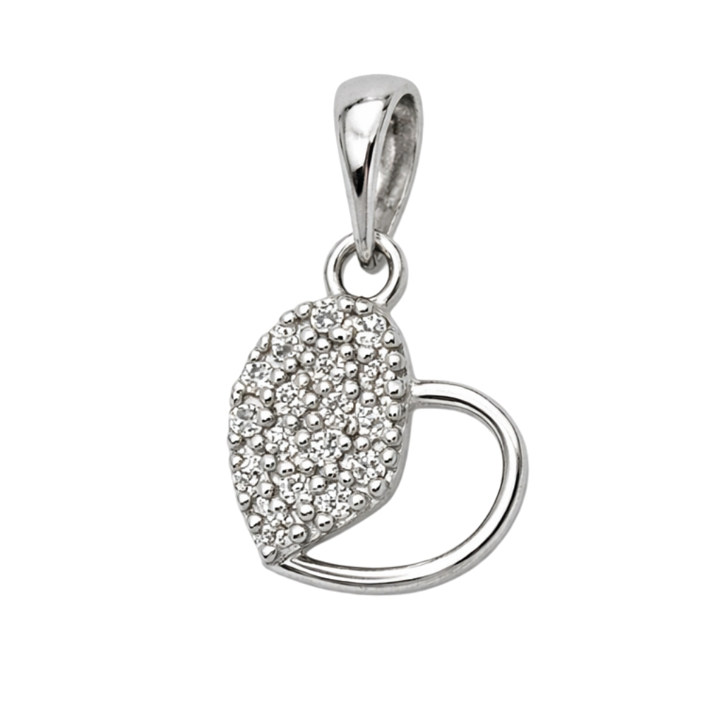 Elegancka zawieszka w kształcie serca została wykonana z wysokiej jakości białego złota próby 585 (14K). Subtelne połączenie pełnej, wysadzanej cyrkoniami części z delikatnym, ażurowym konturem tworzy nowoczesną i niezwykle kobiecą kompozycję.
