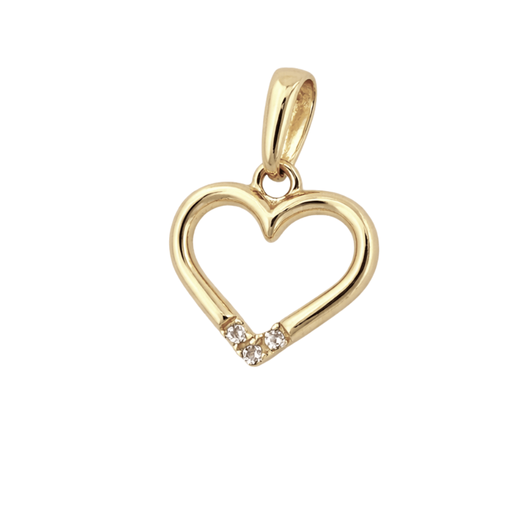 Gładki, polerowany kontur serca pięknie odbija światło, eksponując ciepły odcień żółtego złota. Dolną część zawieszki zdobią trzy drobne, starannie oprawione cyrkonie, które dodają kompozycji subtelnego blasku i romantycznego akcentu. Kontrast pomiędzy lustrzaną powierzchnią złota a połyskiem kamieni tworzy harmonijną i nowoczesną całość.