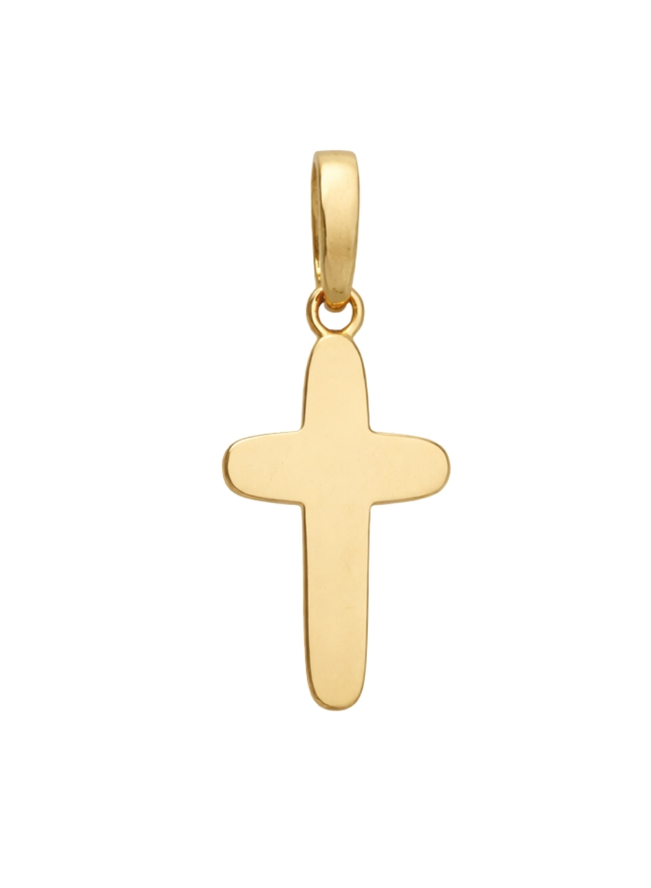 Gładka, starannie wypolerowana powierzchnia pięknie odbija światło, nadając całości subtelnego blasku i podkreślając ciepły odcień złota. Delikatnie zaokrąglone ramiona krzyża nadają mu harmonijny wygląd oraz sprawiają, że prezentuje się niezwykle estetycznie.