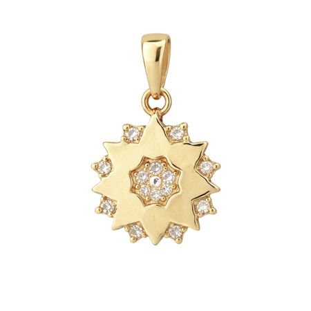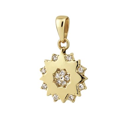 Wyjątkowa zawieszka w kształcie gwiazdy została wykonana z wysokiej jakości złota próby 585 (14K). Jej harmonijna, promienista forma została ozdobiona lśniącymi cyrkoniami, które subtelnie podkreślają kontur oraz centralny motyw, nadając biżuterii eleganckiego blasku.