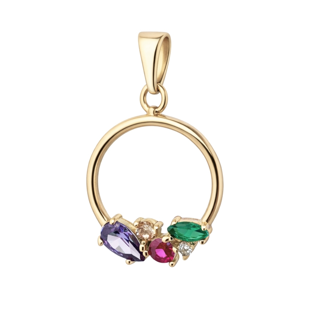 Zawieszka została wykonana z wysokiej jakości żółtego złota próby 585 (14K). Delikatna forma koła została ozdobiona kolorowymi cyrkoniami o zróżnicowanych kształtach i barwach. Tworzą one harmonijną, pełną blasku kompozycję, która przyciąga wzrok i nadaje biżuterii wyjątkowego charakteru.