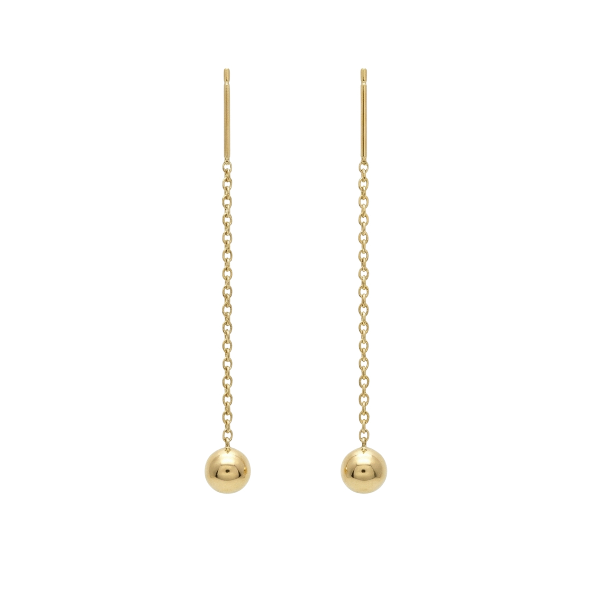 Kolczyki zostały wykonane z wysokiej jakości żółtego złota o próbie 585 (14K). To delikatny model przewlekany, zakończony subtelną, złotą kuleczką, która nadaje biżuterii minimalistyczny, a jednocześnie elegancki charakter.
