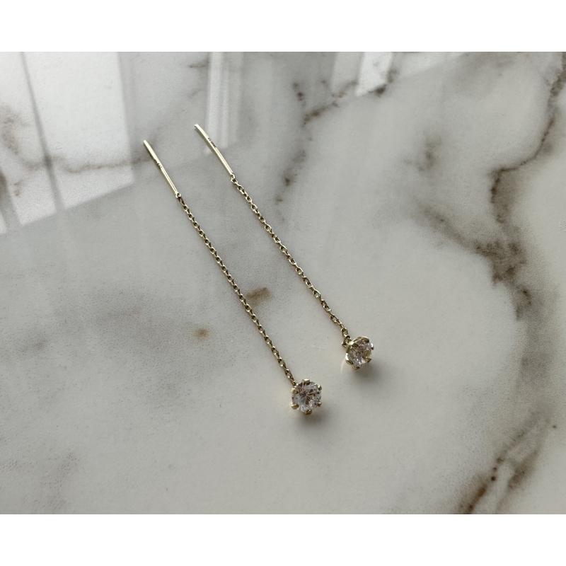 Złoty, przewlekany kolczyk zakończony pięknie osadzoną cyrkonią. Został wykonany z dbałością o każdy szczegół. Biżuteria ta będzie towarzyszyć kobiecie przez długie lata. Kolczyk charakteryzuje się niepowtarzalnym stylem, który docenią panie lubiące biżuterię dopracowaną w każdym detalu.