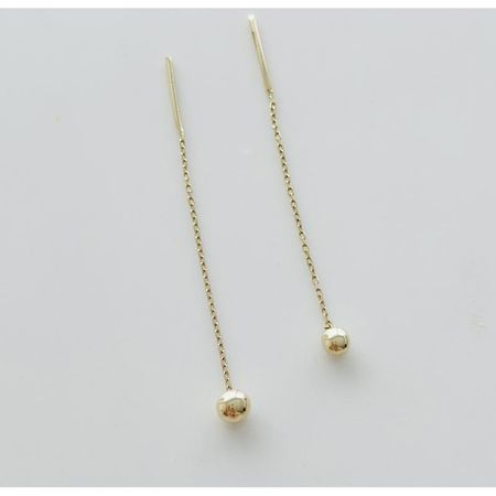 Przewlekany kolczyk zakończony złotą kuleczką. Został wykonany z dbałością o każdy szczegół. Biżuteria ta będzie towarzyszyć kobiecie przez długie lata. Kolczyk charakteryzuje  się niepowtarzalnym stylem, który docenią panie lubiące biżuterię dopracowaną w każdym detalu.