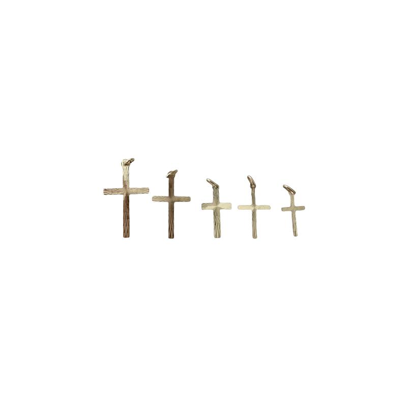 Piękny krzyżyk z ozdobnie wyrytymi promieniami, wykonany ze złota pr. 585. Druga strona jest gładka.