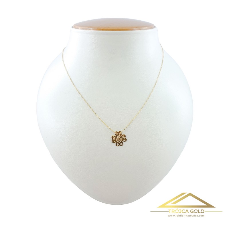 Złota celebrytka w kształcie ażurowej koniczynki to piękna biżuteria, która świetnie sprawdzi się w codziennej stylizacji oraz będzie idealna na wieczorne wyjście jako delikatny dodatek do wyszukanej kreacji.