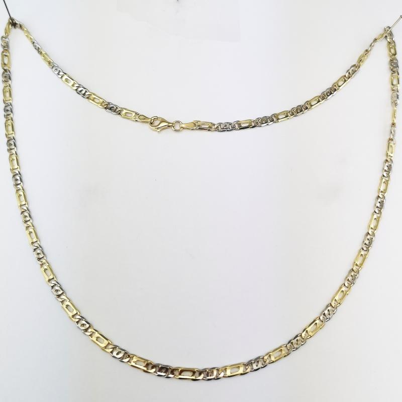 Piękny łańcuszek fantazyjny splot "Bawole oko" z białego i żółtego złota. Elegancki i wyjątkowy dodatek.