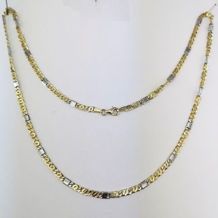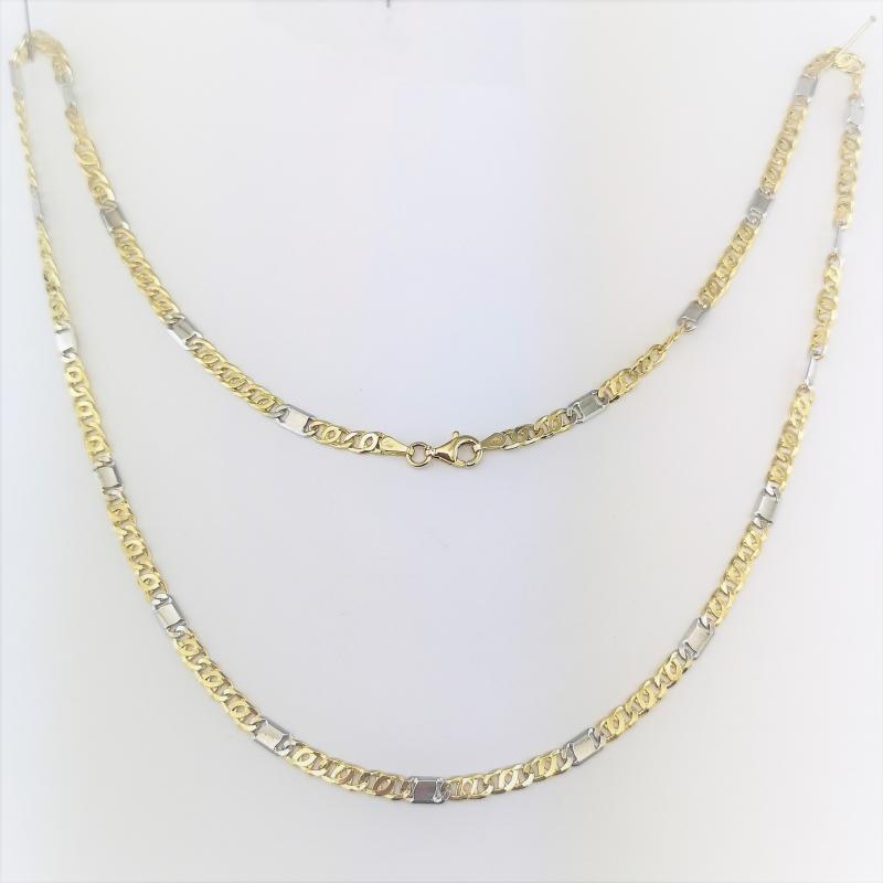 Piękny łańcuszek fantazyjny splot "Bawole oko" z białego i żółtego złota. Elegancki i wyjątkowy dodatek.