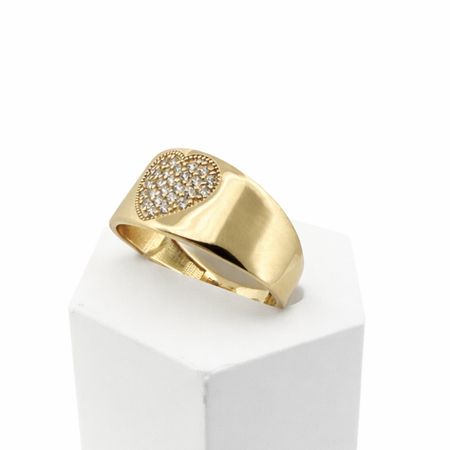 Pierścionek został wykonany z żółtego złota próby 585 (14K). Szeroka, elegancka forma nadaje mu wyrazisty charakter, a gładka, polerowana powierzchnia podkreśla szlachetność kruszcu.