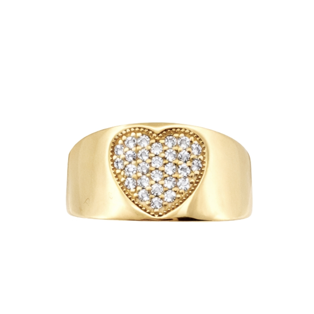 Centralnym elementem jest motyw serca wypełniony drobnymi białymi cyrkoniami. Starannie osadzone kamienie efektownie odbijają światło, nadając całości subtelnego blasku.
