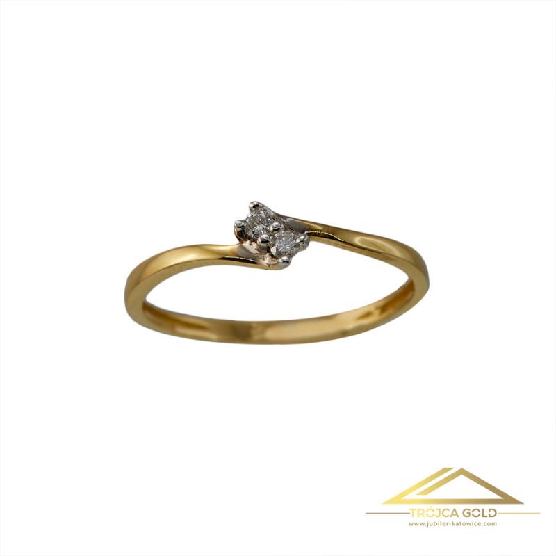 Złoty pierścionek z 2 brylantami o łącznej masie 0,02 ct oraz wadze 1,11g